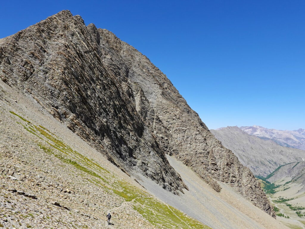 Il faut dire que ce sommet n’est pas des plus simples. Le schiste se délite et les pierres volent un peu trop facilement (on est tous restés casqués !). Le franchissement des trois ressauts finaux se fait en mode escalade facile après lecture plus difficile des meilleurs passages.