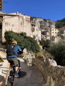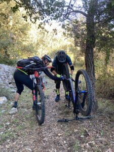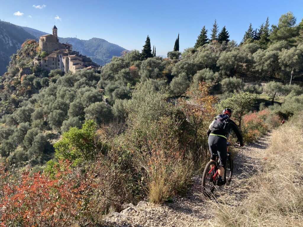 Et c’est parti pour la première descente vers les villages de saint-martin de Peille jusqu’au charmant village de Peillon. Un dernier bout de sentier nous mène à la gare de la grave de Peille un peu moins bucolique avec la présence sur l’autre colline de l’imposante usine de ciment. Un ou deux arrêts pour regonfler les pneus nous ont ralenti.