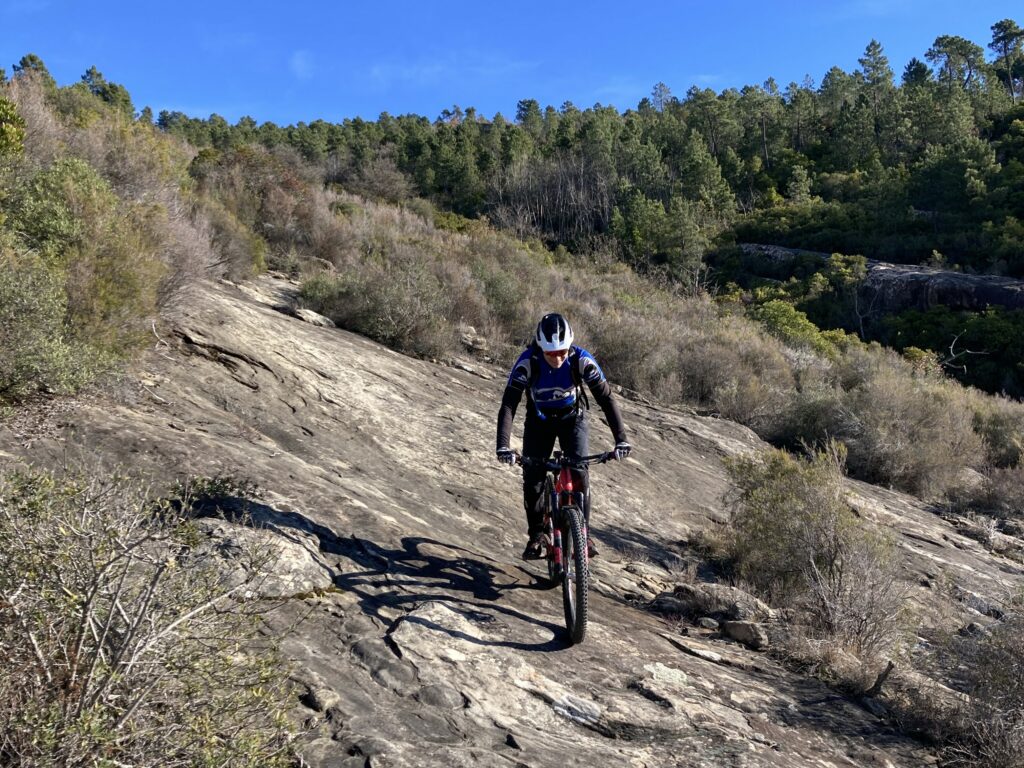 Au départ de Berre, on descend désormais en face nord et çà caille mais c’est beau. La partie basse se termine dans les terres grises de l’Escarène, encore un must . Un passage autrefois délicat mais roulant, est désormais protégé par un câble.